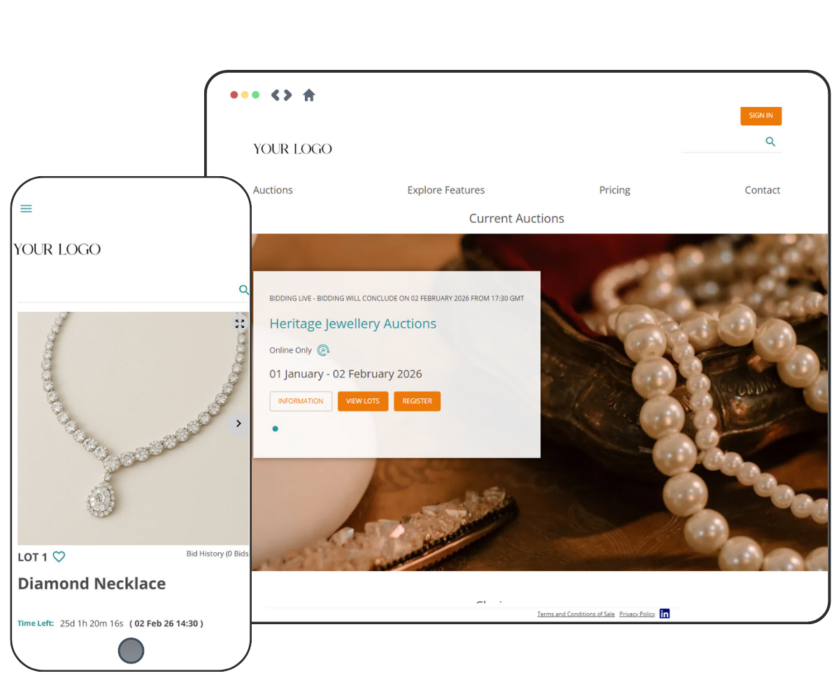 Designed for organisations running auctions to sell their own stock, assets, or collections — whether as a one-off event or as part of ongoing auction activity — under their own brand and terms.